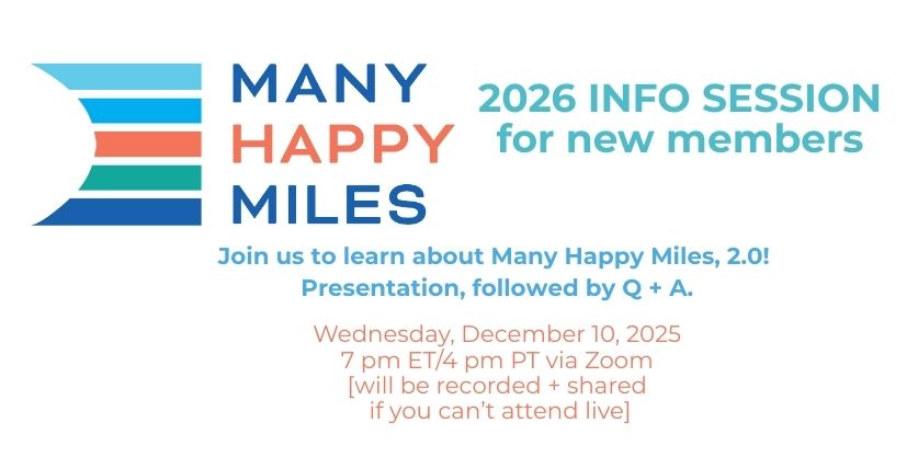 ➡️ Join us on December 10 for a Zoom meeting about Many Happy Miles in 2026. Register here to attend; even if you can’t make it but want the video, please go ahead and register.