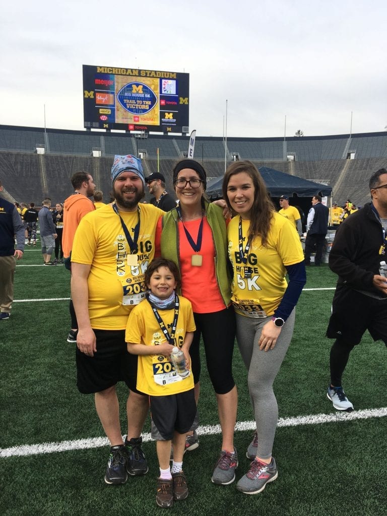 My Best Running Friend–who I don’t run with very much: Rachel and I met two years ago when we started working at the same school. (We like to say there isn’t a lot of difference between her middle school teaching life and my preschool teaching life!) We found out that we were both running the Detroit Marathon. Our friendship has actually grown from our conversations as injured runners by encouraging each other on, sharing in our setbacks and accomplishments. We’ve gone to races together to cheer on her husband or other friends. I also cheered her on this spring when she did a half marathon.