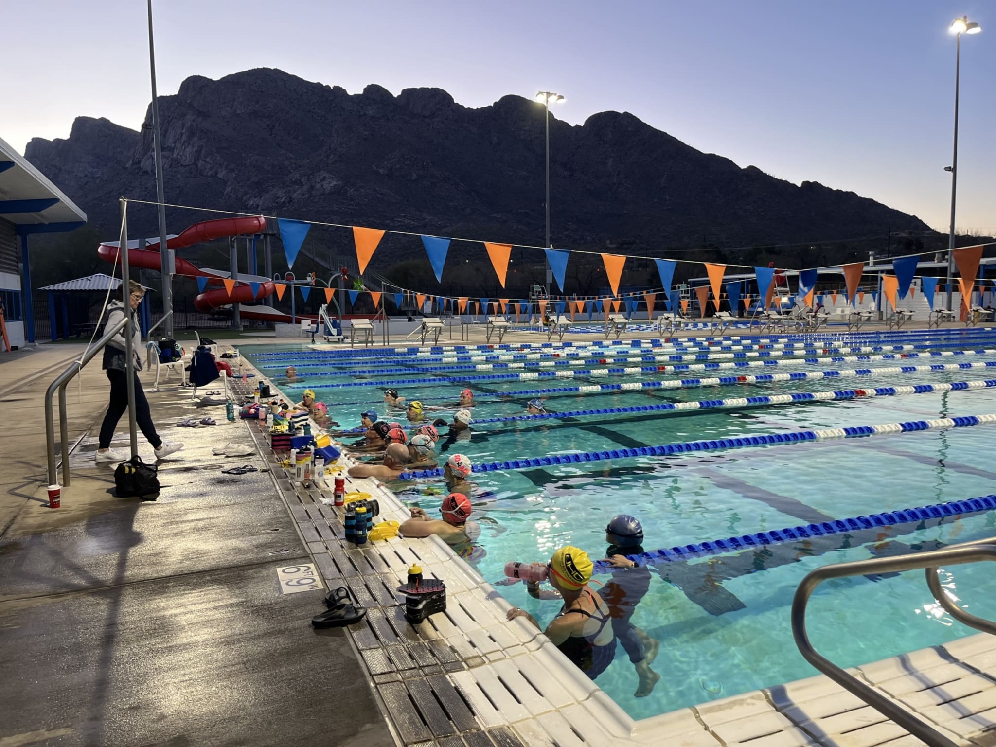 Over the next four days, we bond through three pool sessions (with a dreamy mountain backdrop!); a scenic trail run in Sabino Canyon; group bike rides; and a long run on the popular Loop Trail, a paved path that winds throughout the city. We refuel at Le Buzz, the local favorite café, and I even survive getting a flat during the hill repeat session! Training with the group pushes me past my perceived limits in both distance and effort.